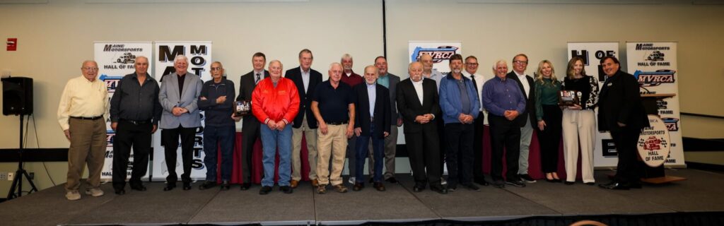 The MVRCA Maine Motorsports Hall of Fame induction banquet, held on Saturday November 1st, brought star power to the evening. The night wrapped up with a group photo of all of the Hall of Famers in attendance. Thank you to everyone who made it a special night. More photos to come soon.
